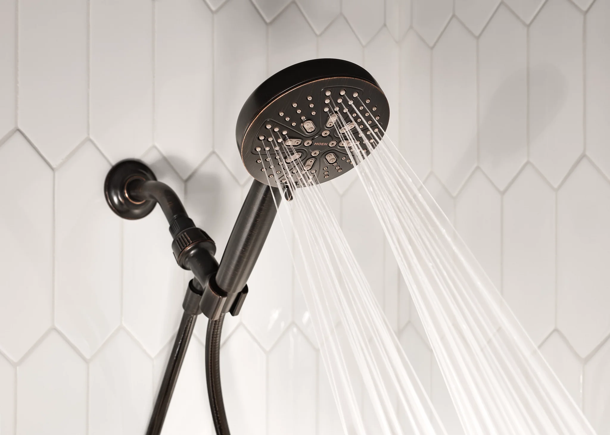 The HydroEnergetix collection offers an array of spray settings that offers an awakening showering experience. Gracious and uncomplicated style features give the HydroEnergetix collection an ageless yet fashion-forward presence. Tailored yet relaxed, the HydroEnergetix collection is an exercise in design balance. This lustrous collection works seamlessly with today's lifestyles, providing you style and on-demand water flexibility to enhance your showering experience. The 60 in. hose included is kink-free and operates smoothly for seamless water delivery. The 5 in. round spray face, Modern in its design, also provides a generous full spray. The HydroEnergetix 7-Spray Handheld Shower is also EPA WaterSense certified to conserve water without sacrificing performance.