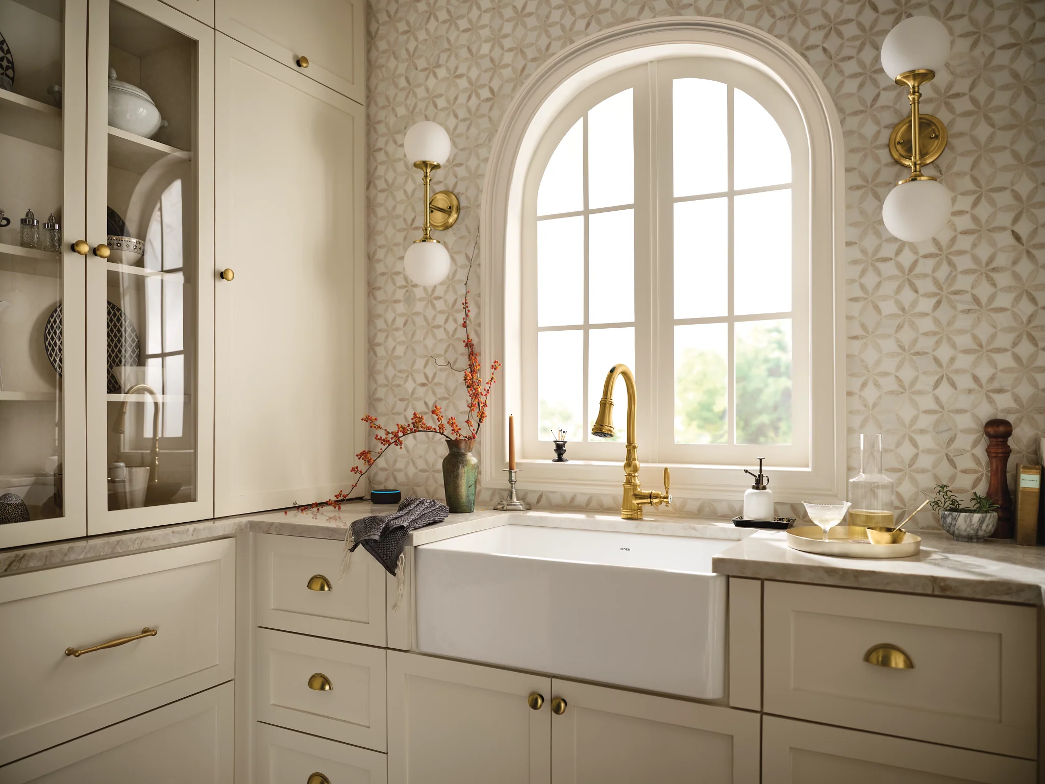 The Moen Smart Faucet with Motion Control makes life easier—and completely touch free—in the kitchen. The advanced sensor technology allows touchless operation of both the temperature and water flow by using simple hand motions, while the voice-activated and app-based features give you additional control and personalization.